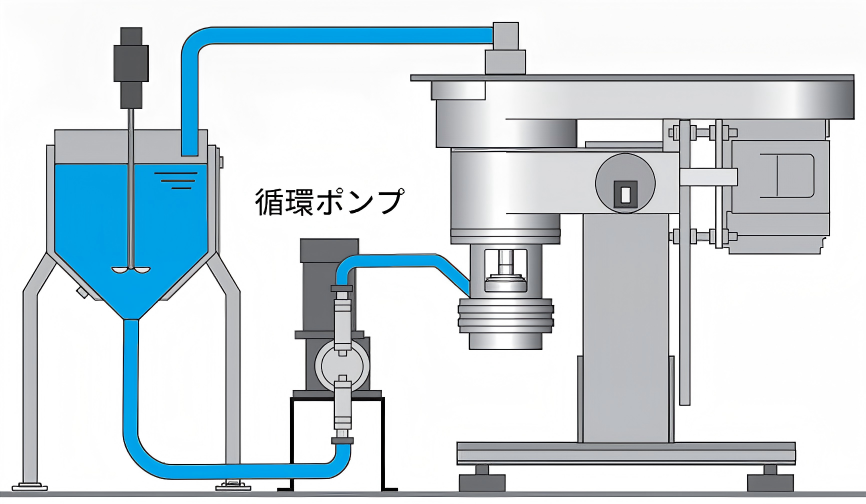 循环系统主要由进料泵、管路及控制单元等组成。它使物料能以特定的路径和循环模式,多次或单次通过高强度的研磨区,确保颗粒得到充分且均等的处理机会。